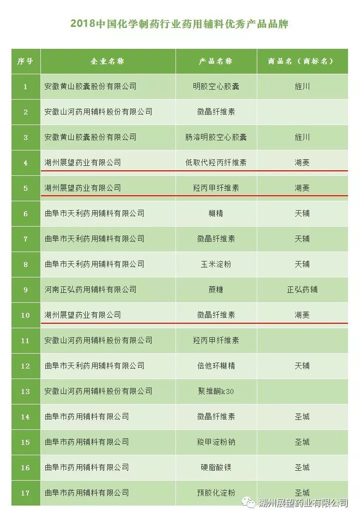 10月16日,“2018中國化學制藥行業(yè)年度峰會”在南京市成功舉辦。會議期間發(fā)布了2018中國化學制藥行業(yè)優(yōu)秀企業(yè)和優(yōu)秀產(chǎn)品品牌榜。展望藥業(yè)斬獲“2018中國化學制藥行業(yè)藥用輔料優(yōu)秀企業(yè)品牌”和“2018中國化學制藥行業(yè)藥用輔料優(yōu)秀產(chǎn)品品牌(‘湖菱’三個產(chǎn)品:低取代羥丙纖維素、羥丙甲纖維素、微晶纖維素)”多項殊榮。