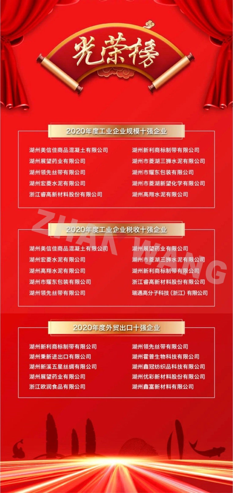 3月2日,湖州展望藥業(yè)有限公司董事長(zhǎng)王虹參加菱湖鎮(zhèn)2021年工業(yè)經(jīng)濟(jì)高質(zhì)量發(fā)展大會(huì)暨一季度項(xiàng)目集中簽約儀式,展望藥業(yè)于該會(huì)上獲得“2020年度工業(yè)企業(yè)規(guī)模十強(qiáng)企業(yè)”、“2020年度工業(yè)企業(yè)稅收十強(qiáng)”、“2020年度外貿(mào)出口十強(qiáng)企業(yè)”多項(xiàng)殊榮。